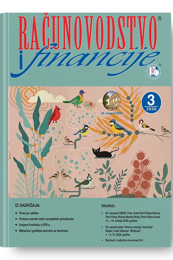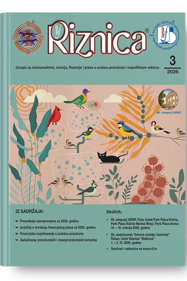 Časopis Računovodstvo i financije sa prilogom Riznica svaki mjesec donosi niz stručnih članaka i novosti koji pomažu u rješavanju pitanja i poslovnih dilema iz područja računovodstva, financijskog izvještavanja, poreza i plaća u gospodarstvu, proračunskim korisnicima i neprofitnim organizacijama.